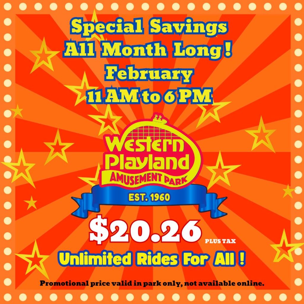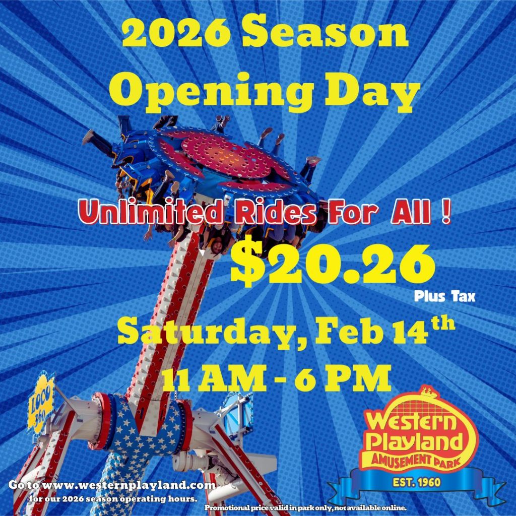 Celebrate with rides, fun and thrills. Join us on Saturday, February 14th, as Western Playland opens its…