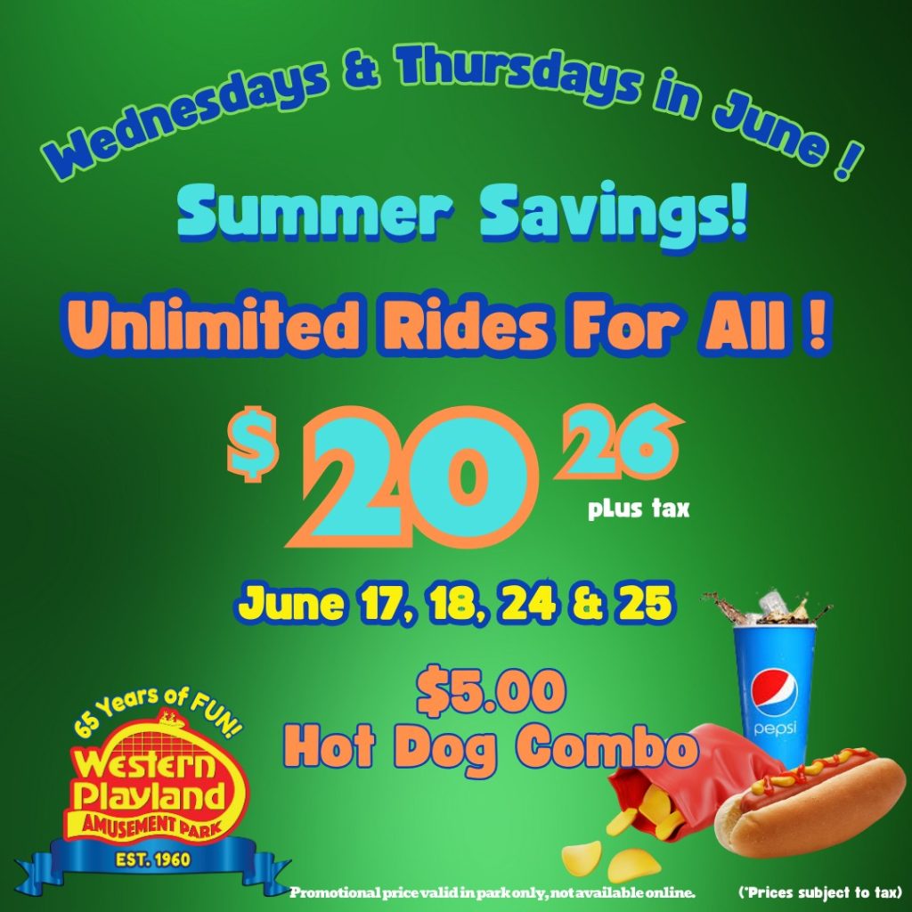 Bring your father and celebrate Father’s Day at Western Playland! Fathers ride FREE with purchase of an…