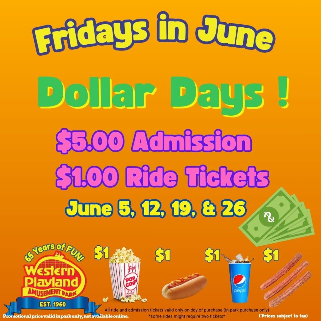 Friday Dollar Days — Big fun. Small dollars starting on June 5th. Experience the ultimate summer fun…