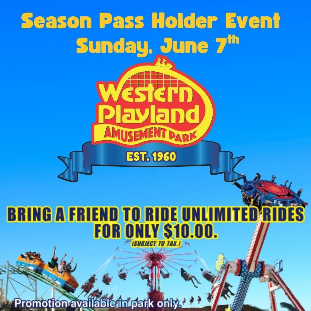 June 7th is your day to have FUN! Bring a friend to Western Playland and they’ll enjoy…