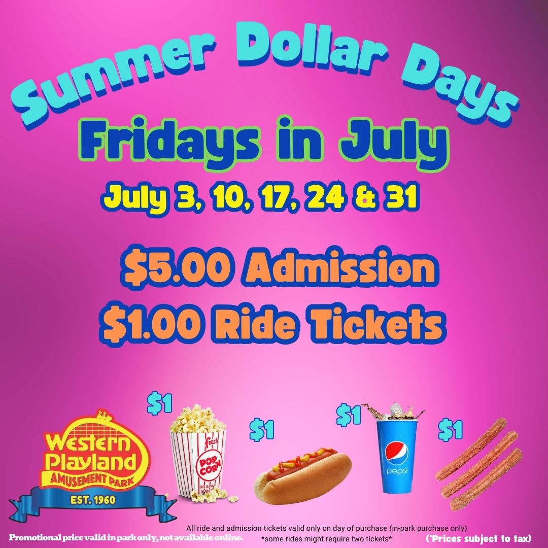 Friday Dollar Days — Big fun. Small dollars starting on June 5th. Experience the ultimate summer fun with Dollar Days, where every moment is a bargain adventure! Dive into a world of excitement with $5.00 plus tax admission, granting you access to a day filled with laughter and joy. Thrill-seekers can revel in the excitement… |